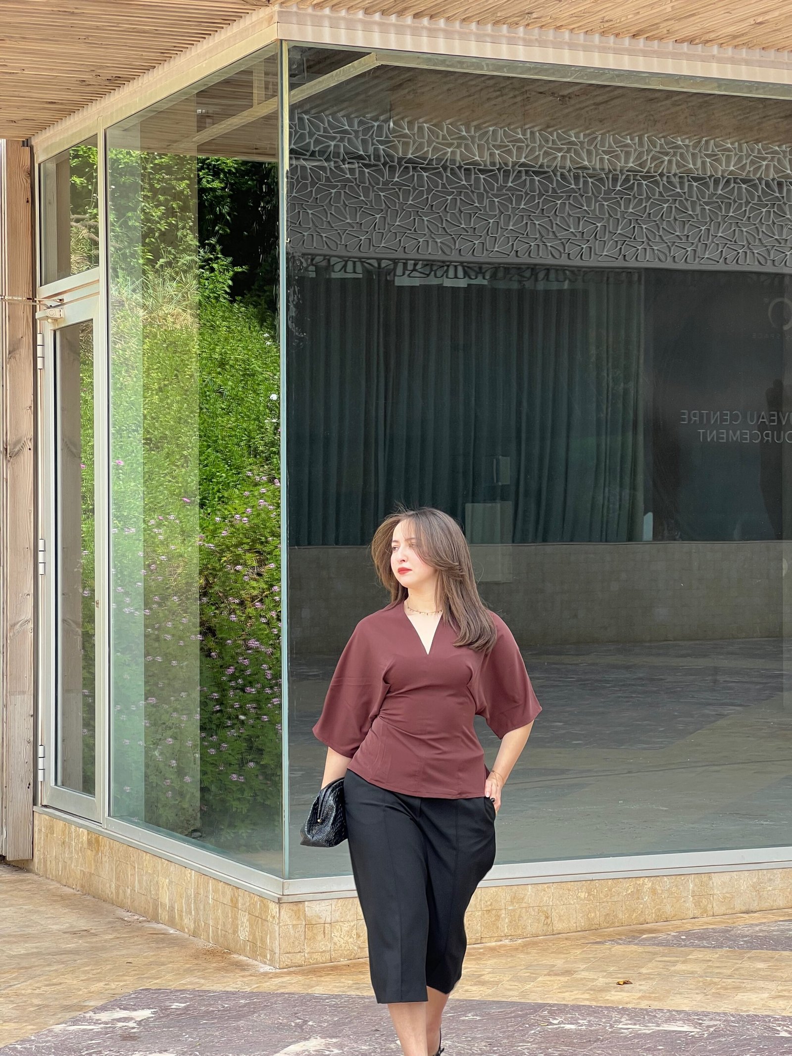 Top élégant à coupe fluide, confectionné dans un tissu de haute qualité, léger et confortable. Décolleté en V et lien à nouer au dos pour un effet marqué.